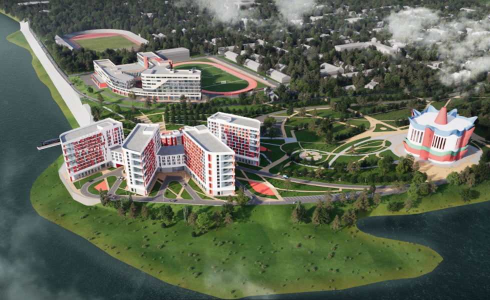 В том числе планируется создание необходимой инфраструктуры кампуса, которая будет включать в себя берегоукрепление, трансформаторные подстанции и локальные очистные сооружения.