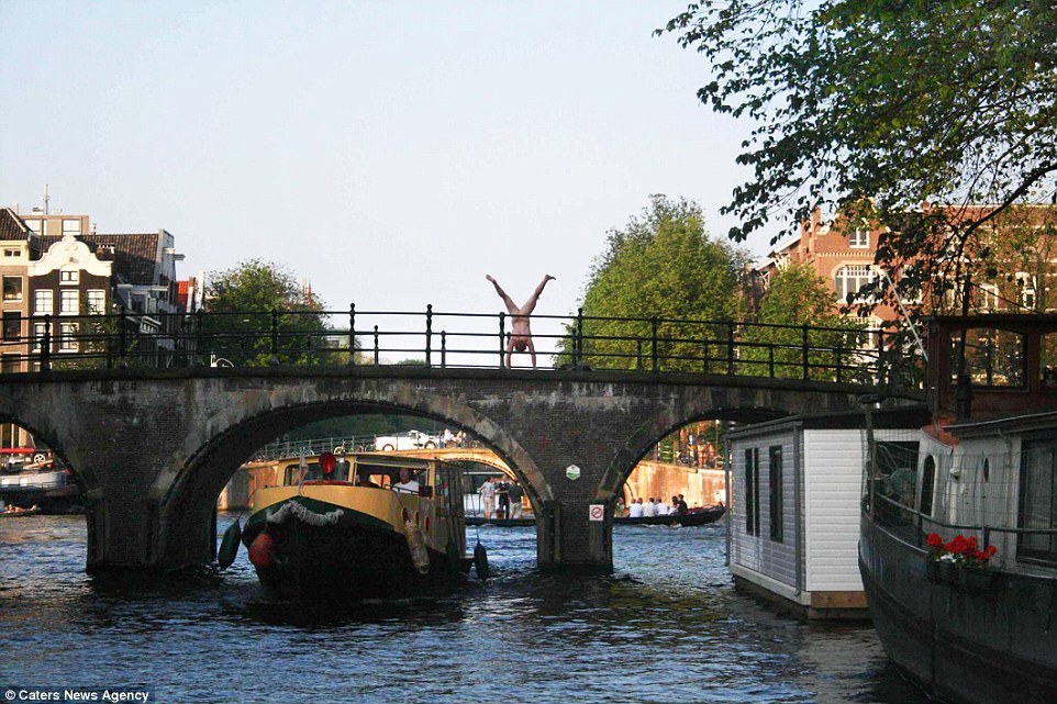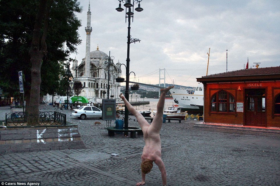 Некий Джонатан Шоулз, похоже, любит фотографироваться и путешествовать. Пребывание в разных точках планеты он отмечает фотосъёмкой себя любимого в голом виде, стоящего на руках с разведёнными ногами в виде буквы V.