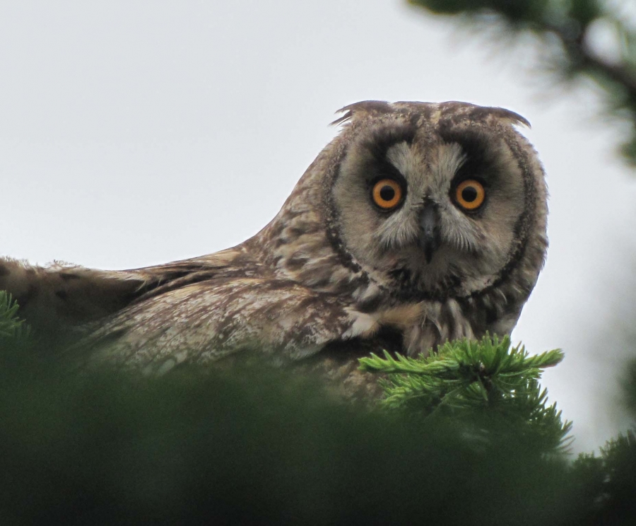 Из жизни ушастых сов: эта изящная ночная птица, характерная мелодичными «загадочными» криками, доносящимися из перелесков и рощ в сумеречные часы, представляет несомненный эстетический интерес. Ушками, цветом оперения и глаз ушастая сова похожа на филина, только очень маленького – птица весит около 350 граммов. Со сложенными «ушами» напоминает болотную сову. Ушастая сова может поворачивать голову на 210 градусов! Охотится эта птица по ночам, используя присаду – столб, забор, дерево. Для охоты ей нужны более или менее открытые места. Сидя на присаде, сова упорно подкарауливает добычу, но если такая тактика не срабатывает, то пускается в облёт охотничьих угодий. Её добыча – мышевидные грызуны. Для выведения потомства выбирает старые гнезда врановых или хищных птиц, но может загнездиться и на земле. Гнездо совы обычно используют только один-два сезона. В кладке обычно 4-5, иногда до 9-10 яиц, однако до месячного возраста доживает не более 3-4 птенцов. Как и все совы в России, ушастая сова носит статус охраняемого вида.