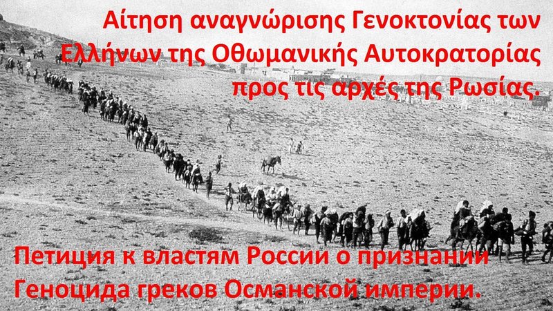 Граждане Греции и России, а так же греки диаспоры обращаются к российским властям с призывом признать геноцид греков в Османской империи, совершённый турками-османами.