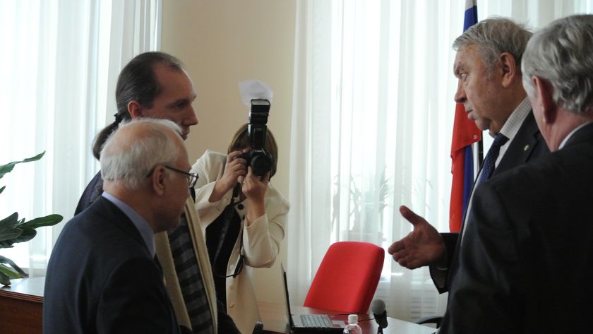 Встреча руководителя национальной Академии наук в Президиуме ДВО РАН завершилась подходом президента и вице-президента РАН академиков Фортова и Сергиенко к журналистам краевых и федеральных СМИ в ходе которого они ответили на ряд злободневных вопросов, касающихся реформирования РАН и отечественной науки в целом.