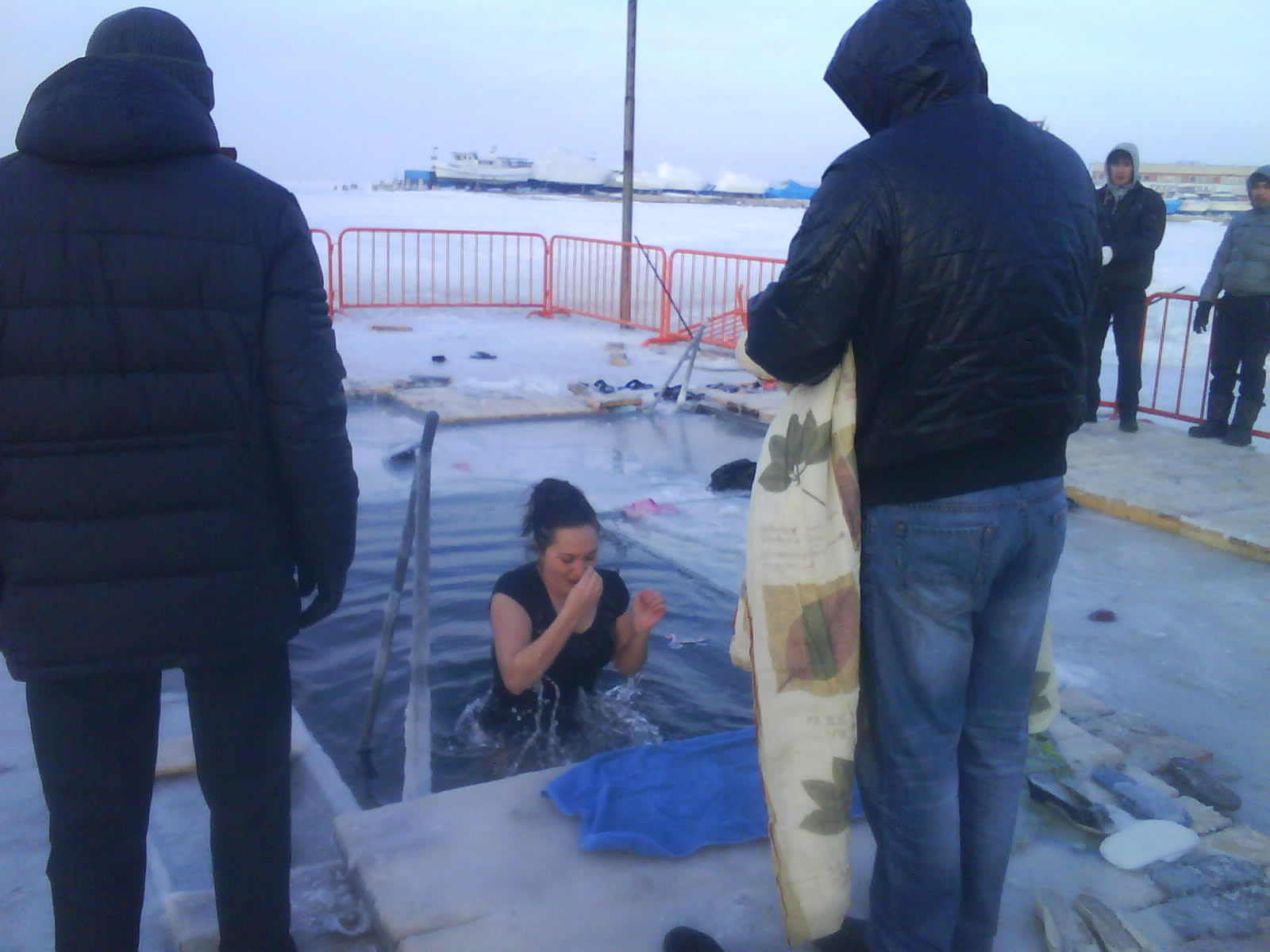 Температура воздуха — минус 15, температура воды — около нуля. Купаться в таких экстремальных условиях не каждому по силе. Но окунуться в крещенскую прорубь на Спортивной гавани Владивостока приехало не малое количество людей. И не только крепких мужчин. Моя собеседница Наталья уже четвёртый год подряд ныряет в прорубь на Крещение.