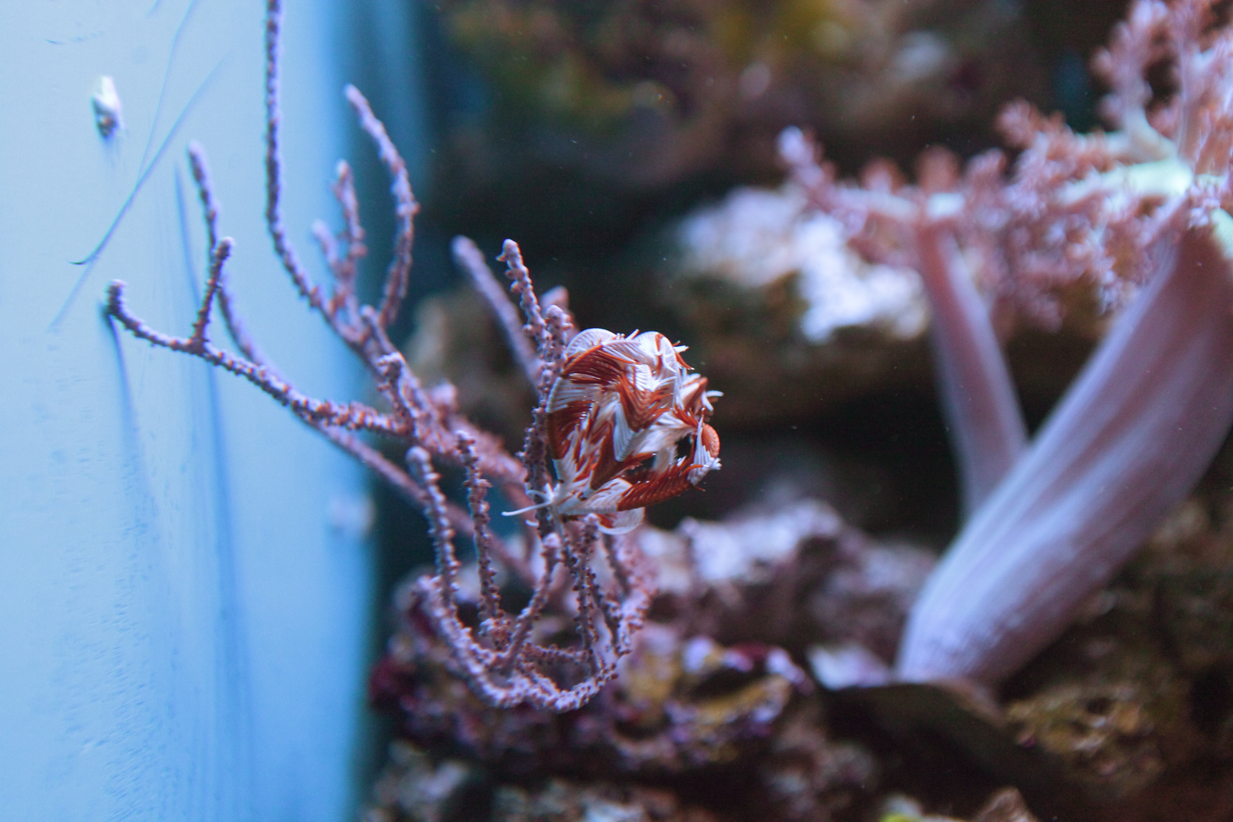Морские лилии Crinoidea поселились в экспозиции «Морской микромир», они относятся к классу иглокожих. Длина лучей морского животного достигает одного метра, всего лучей пять, однако каждый из них может разветвиться, образуя множество «ложных ножек».