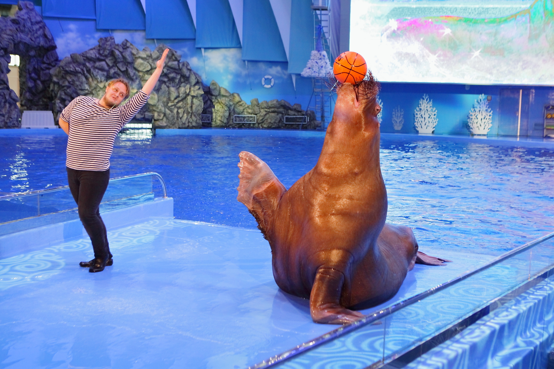 Любимец зрителей — морж Миша — в обновлённой программе представляет любимые всеми танец живота и воздушные поцелуи, а также показывает совершенно новые элементы. Например, совсем недавно он освоил хореографию в стиле «фолк» и научился играть с тренером в ладушки. Кстати, по словам тренера моржа — Антона Орлова, практически все новые элементы ему подсказывает сам Миша, сообщает пресс-служба Приморского океанариума.